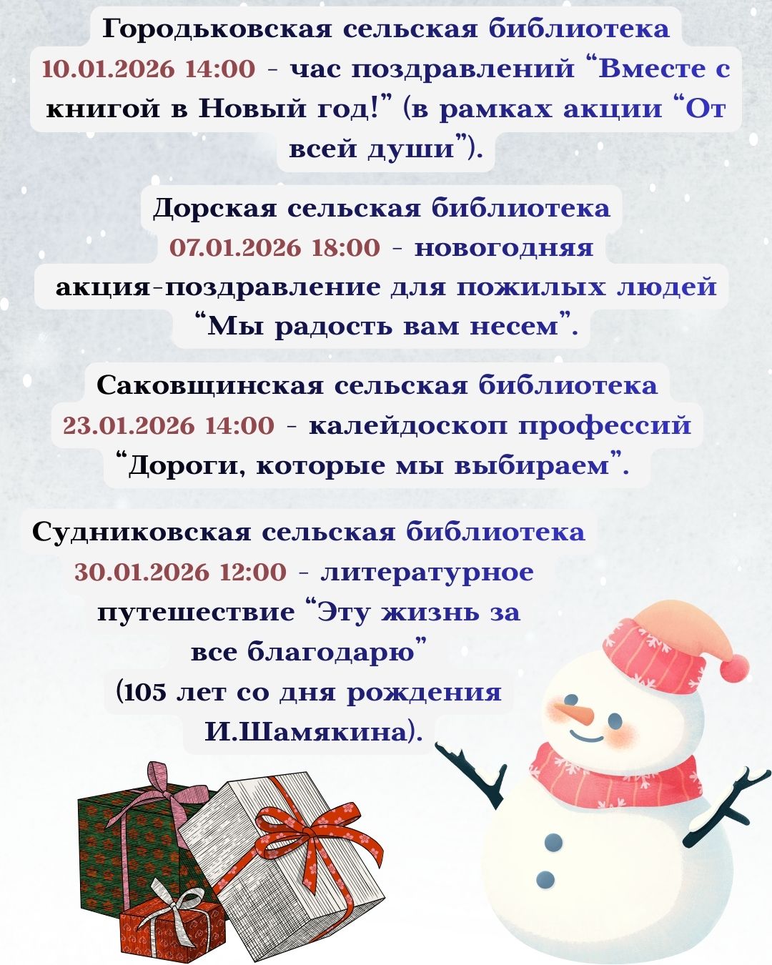 Афиша мероприятий на ЯНВАРЬ 2026 г.