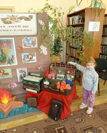 02.05.2025✅Накануне 80 -й годовщины Победы в Великой Отечественной войне в Пугачёвской сельской библиотеке оформлена фотозона "Этих дней не смолкнет слава".