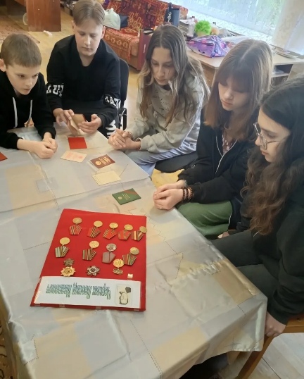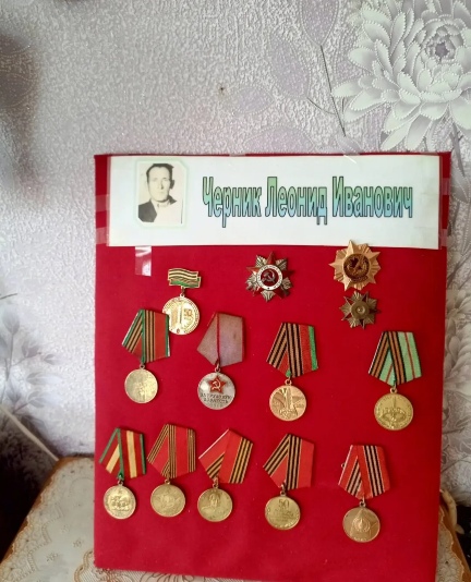 Ребятам были представлены для обозрения из личного архива ордена и медали Черника Леонида Ивановича.