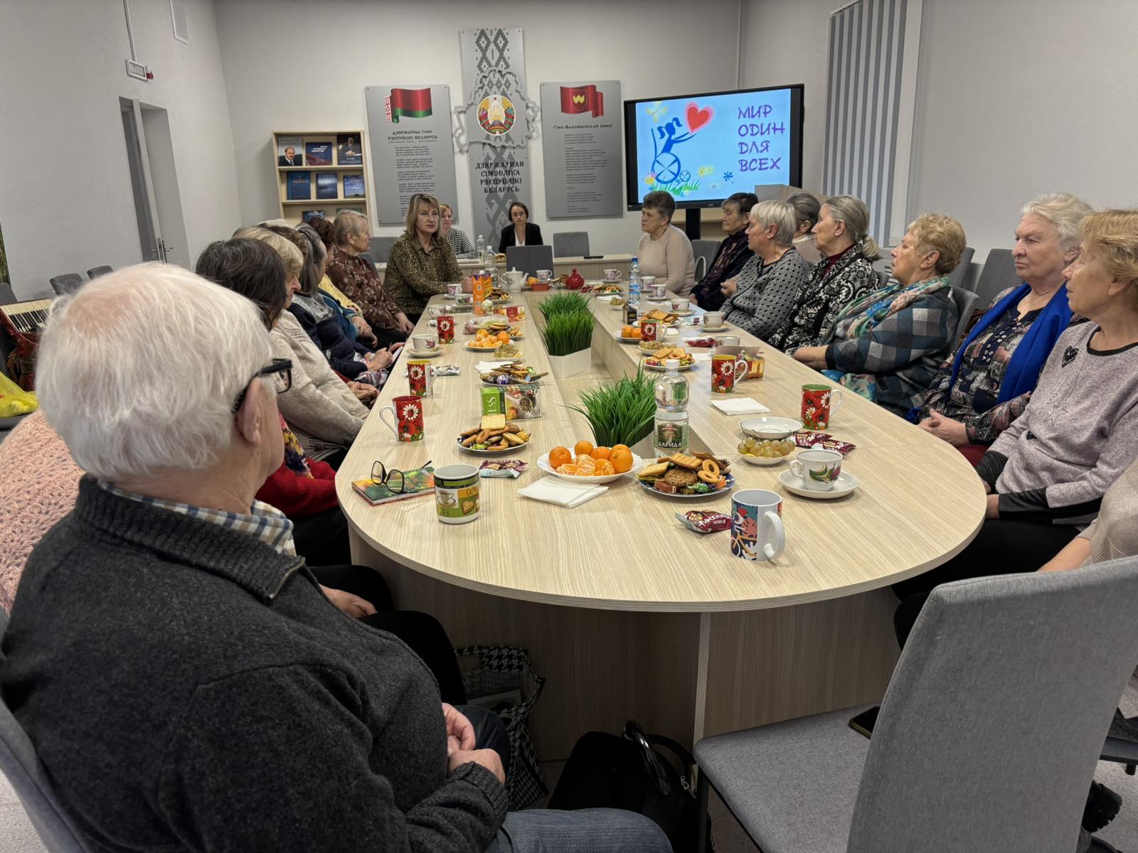 Сотрудники Воложинской центральной районной библиотеки подготовили мероприятие "Передай добро по кругу", в рамках клуба для пожилых и инвалидов "От сердца к сердцу". На мероприятии присутствовала заведующий Воложинской районной нотариальной конторы - Марина Григорьевна Теляжевич. Свои стихи читала Мария Антоновна Шакун - член Союза писателей Республики Беларусь, член народного литературно- художественного объединения "Рунь". Юмористические байки читала Гаврис Ирина Петровна - активная читательница и участница клуба "От сердца к сердцу". Мероприятие проходило под музыкой Галины Владимировны Прокопчик.