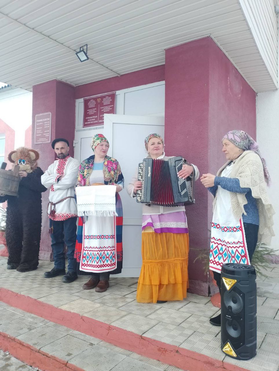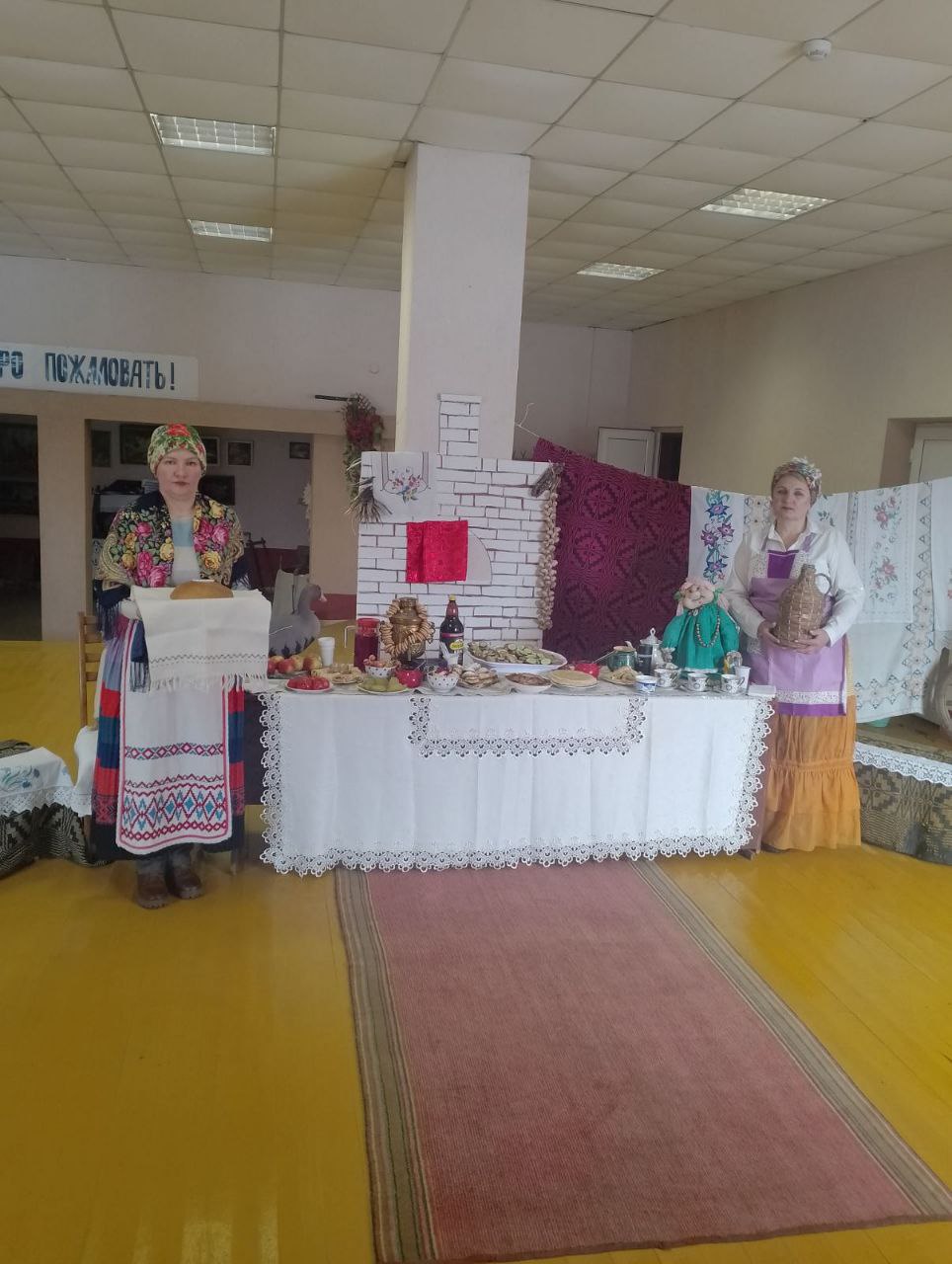 Гасцей сустракалі на ганку гаспадар і гаспадыня з хлебам і соллю. Гучалі беларускія народныя песні. Затым запрасілі ўсіх у файе, дзе быў накрыты святочны стол з нацыянальнымі стравамі.