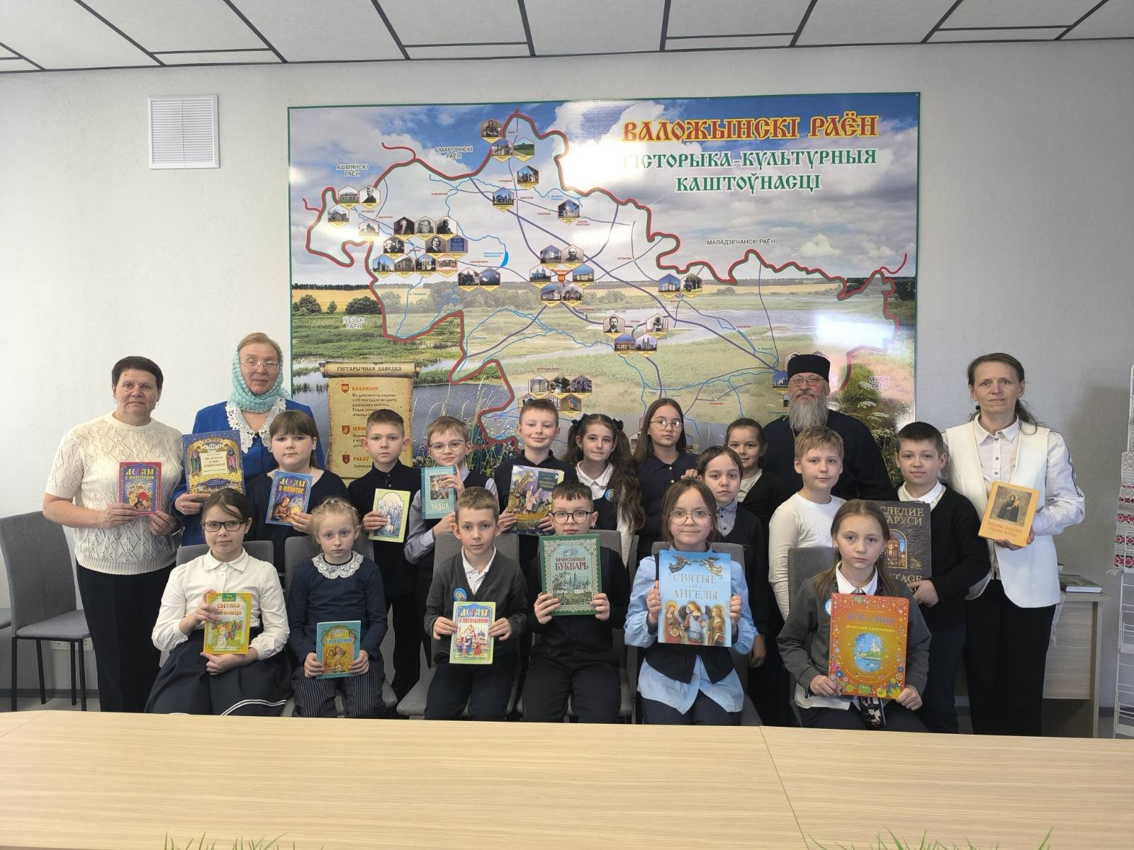 В Воложинской детской библиотеке совместно с центром творчества и молодежи состоялся праздник ко Дню православной книги «Свет духовной книги». Среди присутствовавших были: протоиерей храма равноапостольных Константина и Елены Дмитрий Огиевич, учащиеся 3 «А» класса средней школы №1 занимающиеся в клубе «Истоки» вместе со своим руководителем Натальей Александровной, воспитанники воскресной школы при храме.