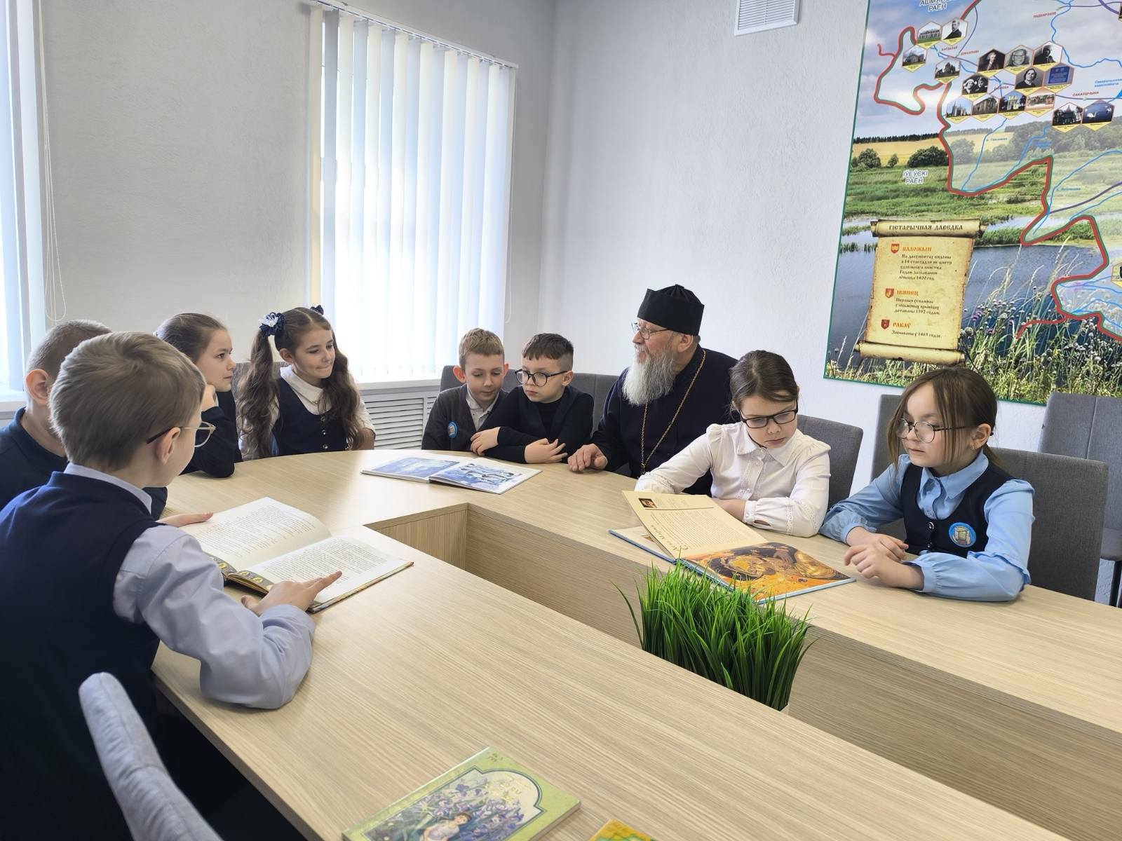 Священнослужитель говорил о том, как духовная литература помогает человеку задуматься о вечных ценностях — добре, вере, милосердии и любви к ближнему. Ответил на вопросы ребят, произнес напутственные слова в преддверии Великого поста и призвал всех к чтению духовных книг, так как именно они помогают человеку оставаться человеком.