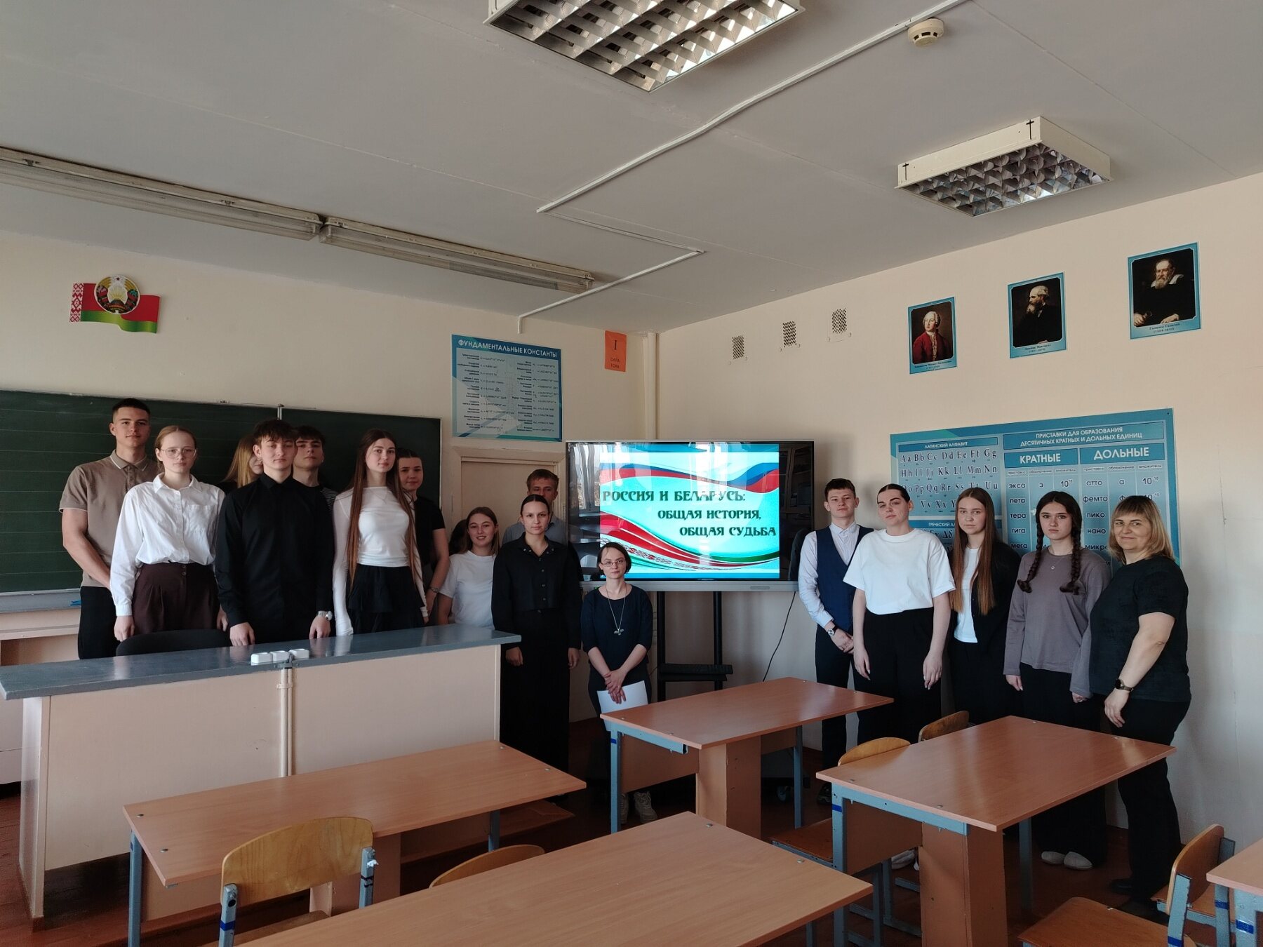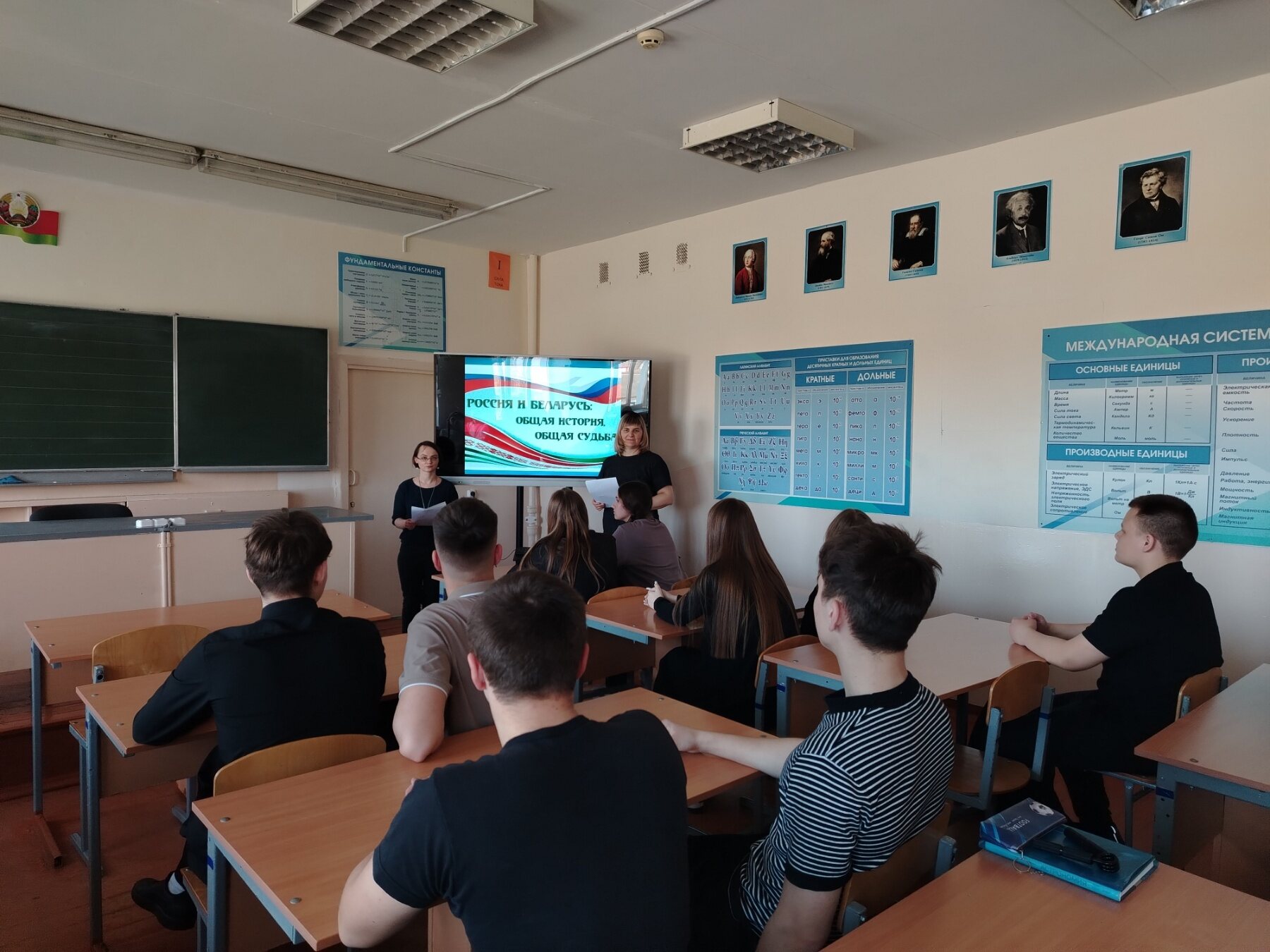 К этому дню Воложинская центральная районная библиотека подготовила открытый диалог "Беларусь и Россия: общая история". Сотрудники библиотеки рассказали о значении Дня единения народов Беларуси и России для союзного государства, поговорили об истории праздника. Слушателями были учащиеся 11 класса ГУО "СШ№1" г. Воложина. Мероприятие прошло интересно и познавательно.